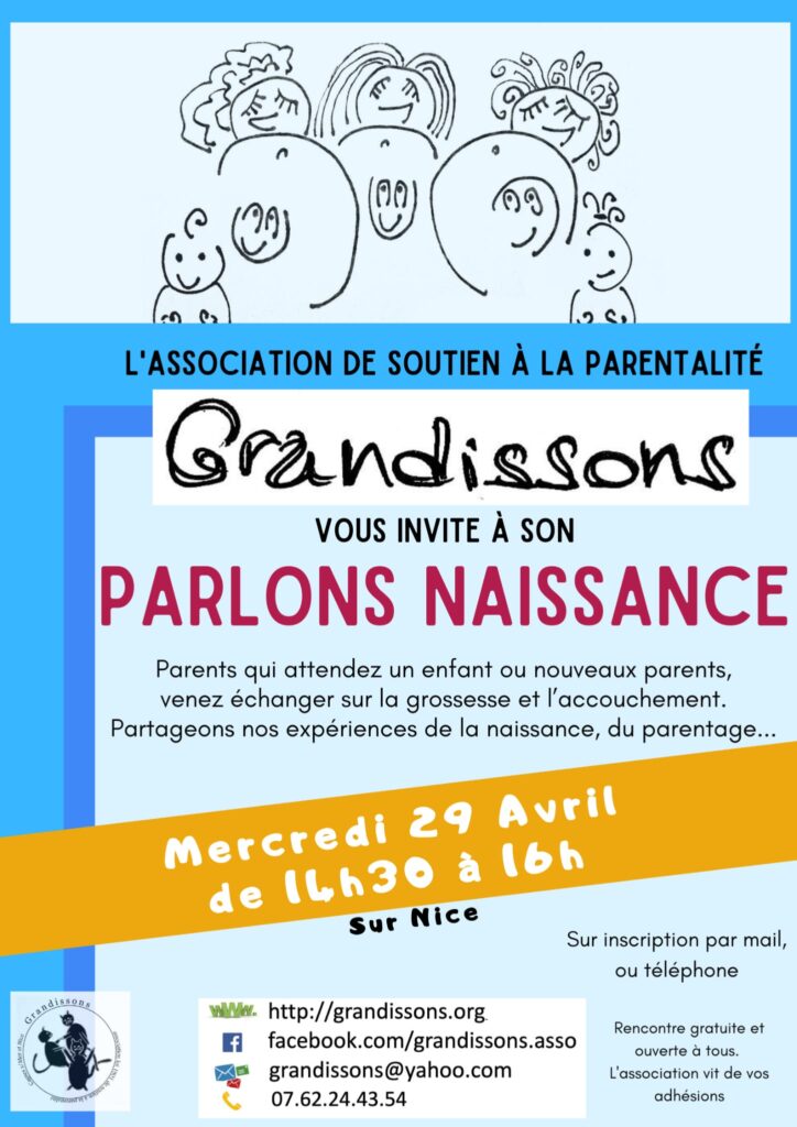 Bonjour, je lis régulièrement des messages de parents qui se sentent un peu isolés et qui souhaitent rencontrer d’autres parents. L’association Grandissons Asso, c’est une petite association créée par des mamans bénévoles, justement dans ce but là. Toutes les rencontres sont gratuites et ouvertes à tous le monde (sur inscription). La prochaine rencontre, c’est pour parler grossesse et accouchement, discuter, échanger, et se rencontrer (à Nice Est).